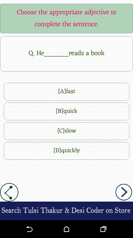 English Grammar - English grammar is the best way to improve your English grammar skills. Easy to use interface make it easy to test your English language skills.