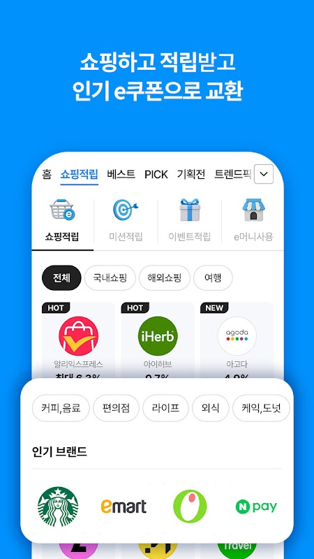 - বিভিন্ন উপায়ে কেনাকাটা করুন, এক জায়গায় পুরষ্কার অর্জন করুন! কেনাকাটা করে, ইভেন্টে এবং মিশনে অংশগ্রহণ করে সীমাহীন ই-মানি উপার্জন করুন।