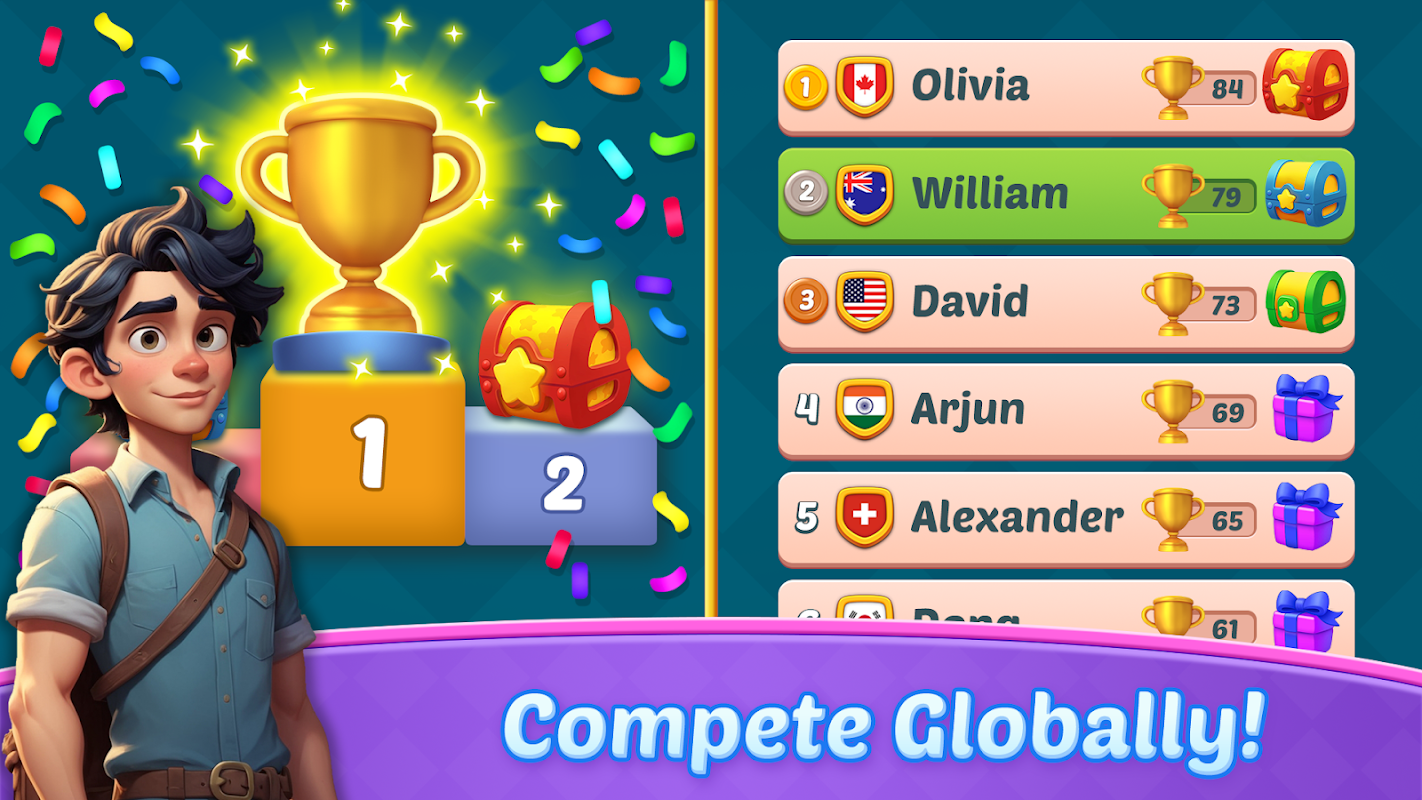 ধাঁধার রাজ্য অন্বেষণ করুন এবং রাজা-যোগ্য ধন আনলক করুন। তারকা সংগ্রহ করুন, মুকুট অর্জন করুন এবং ম্যাচ মাস্টার হওয়ার জন্য এই রাজকীয় ক্যান্ডি-ভরা রাজ্যে আপনার দক্ষতা প্রমাণ করুন