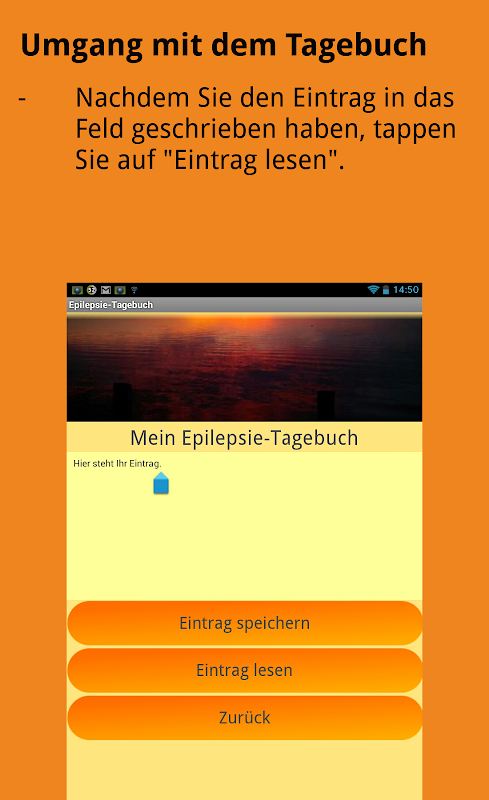 Sie leiden an Epilepsie und benötigen eine zuverlässige Möglichkeit, Ihre Anfälle aufzuzeichnen? Probieren Sie unser Epilepsie Tagebuch aus und erhalten Sie Tipps im Umgang mit der Epilepsie. Sie können mit Datum, Uhrzeit und völlig freiem Eintrag alles notieren, was Ihnen zu Ihren Anfällen wichtig erscheint (z. B. Art der Anfälle, Intensität, Schlafdauer, Medikamente, Nahrungsmittel etc.). Die App wurde von einer Betroffenen für Betroffene entwickelt. Damit Sie Ihrem Arzt lückenlose Anfallsaufzeichnungen präsentieren können!