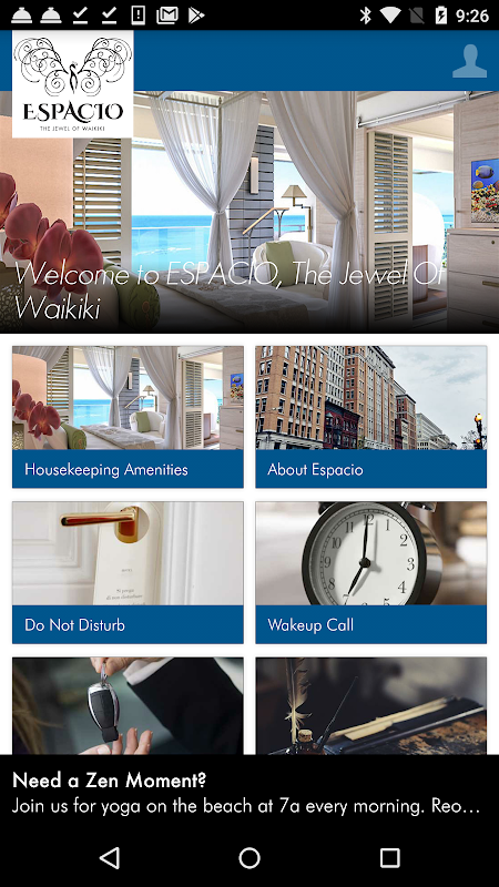 একটি মোবাইল ডিভাইস বহনকারী অতিথিরা তারা আসার আগে ESPACIO অভিজ্ঞতা করতে পারে। ব্যবহারকারীরা হোটেলের পরিষেবা, অতিথি সুবিধা, সুযোগ-সুবিধা, স্থানীয় অঞ্চল এবং আকর্ষণ সম্পর্কে আরও শিখতে পারেন। হোটেলের অতিথিরা থাকার পরেও জাগ্রত কলগুলি, গৃহস্থালি পরিষেবাগুলি, বইয়ের আকর্ষণ এবং আরও অনেক কিছুর অনুরোধ করতে পারে।