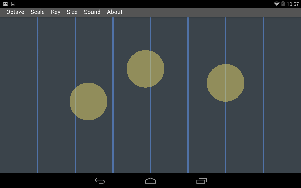 EtherSurface is a multitouch performance surface and real time synthesizer for your Android device. Slide your fingers across the screen to control pitch, timbre, and volume. EtherSurface has the ability to play in a variety of scales and tonalities, including the microtonal Bohlen-Pierce scale. Version 1.0 has three unique timbres you can choose from.