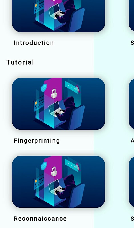 The app provides basic ethical hacking tutorial