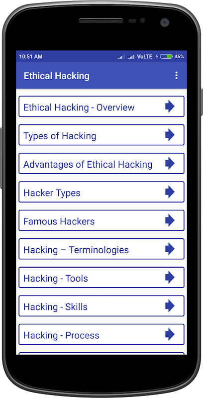 Ethical Hacking app collections of Categories are below and provide all this Topic