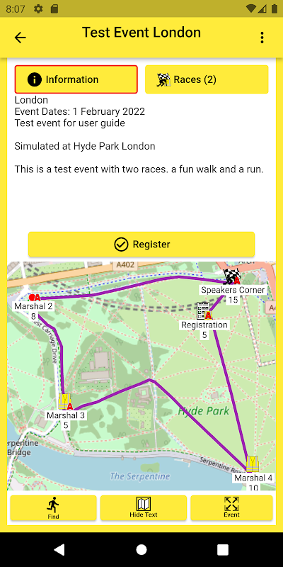 If you are an event organiser or marshal please use the Event Marshal app to marshal, administer or create events.