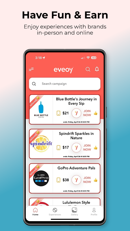 eveoy অ্যাপের মাধ্যমে ব্র্যান্ড ইভেন্ট উপার্জন করুন এবং উপভোগ করুন।