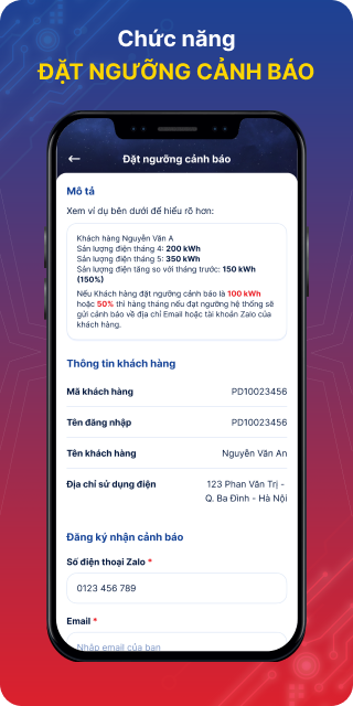 - গ্রাহকরা অনুরোধ জমা দিতে পারেন এবং সরাসরি অ্যাপ্লিকেশনের মাধ্যমে বৈদ্যুতিক পরিষেবার অগ্রগতি পর্যবেক্ষণ করতে পারেন যেমন পাওয়ার সমস্যা রিপোর্ট করা, নতুন বিদ্যুৎ সরবরাহ পরিষেবা, বিদ্যুৎ ক্রয় এবং বিক্রয় চুক্তি পরিষেবা (সই করা, প্রতিস্থাপন, ইত্যাদি) পরিবর্তন, সম্পূরক তথ্য,...) ; পরিমাপ সরঞ্জামের পরিষেবা (পরীক্ষা, পরীক্ষা)