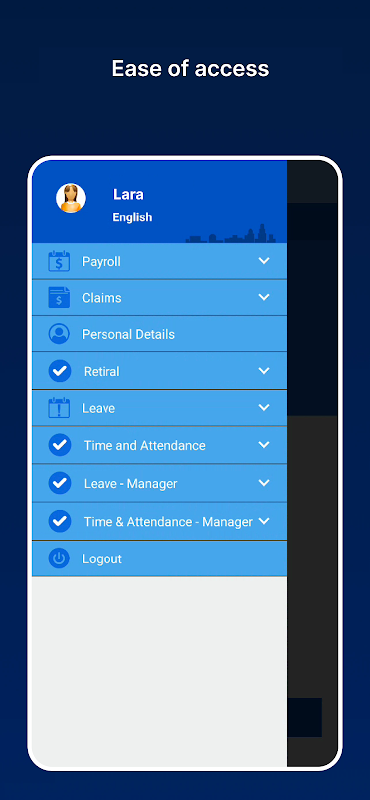 আপনাকে লগইন করতে কিন্তু বেতনের, ব্যক্তিগত তথ্য, ইত্যাদি কোন মেনু দেখতে সক্ষম সক্ষম হয় না, তাহলে Excelity বেতনের পরিচিতির সাথে স্পর্শ পেতে হিসাবে ভাল মেনুর জন্য অ্যাক্সেস করার অনুমতি দিতে আপনার এইচআর / বেতনের প্রশাসকের সাথে চেক করুন যা তারা মোবাইল অ্যাপের মাধ্যমে অ্যাক্সেস করতে পারেন।