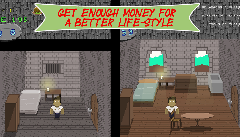 সর্বাধিক বিখ্যাত ঘাতক হয়ে উঠুন এবং এই পিক্সেল-আরপিজি গেমটিতে আপনার জীবন উন্নত করুন
