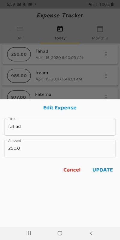 ব্যয় ট্র্যাকার একটি ব্যয় রেকর্ডার অ্যাপ্লিকেশন যা আপনার প্রতিদিনের ব্যয় ট্র্যাক করে।