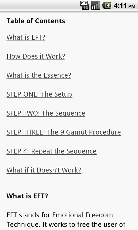 EFT stands for Emotional Freedom Technique. It works to free the user of both physical and emotional pain and relieve chronic conditions by healing the physical responses our bodies make after we’ve been hurt or experienced pain. While some people do not carry the effects of these experiences, others have bodies that hold onto these memories, which affect the way the body works.