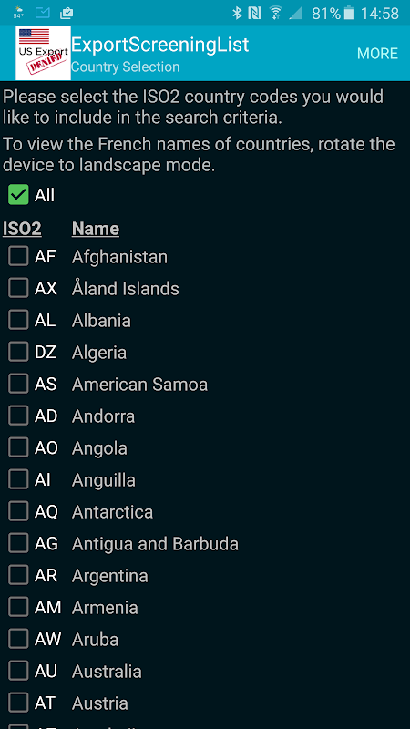 This app may be used as an aid to industry in conducting electronic screens of potential parties to regulated transactions. In the event that a company, entity or person on the list appears to match a party potentially involved in your export transaction, additional due diligence should be conducted before proceeding. There may be a strict export prohibition, requirement for seeking a license application, evaluation of the end-use or user to ensure it does not result in an activity prohibited by any U.S. export regulations, or other restriction.
