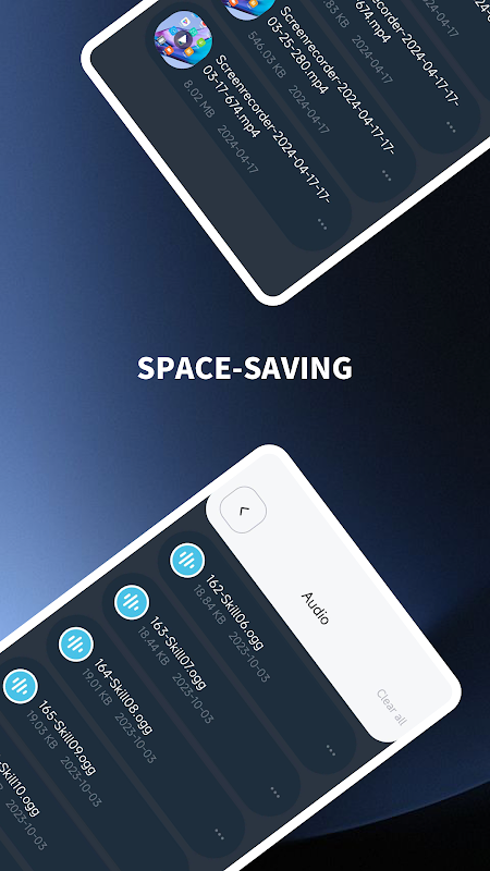 All the files can be browsed and deleted with one tap!