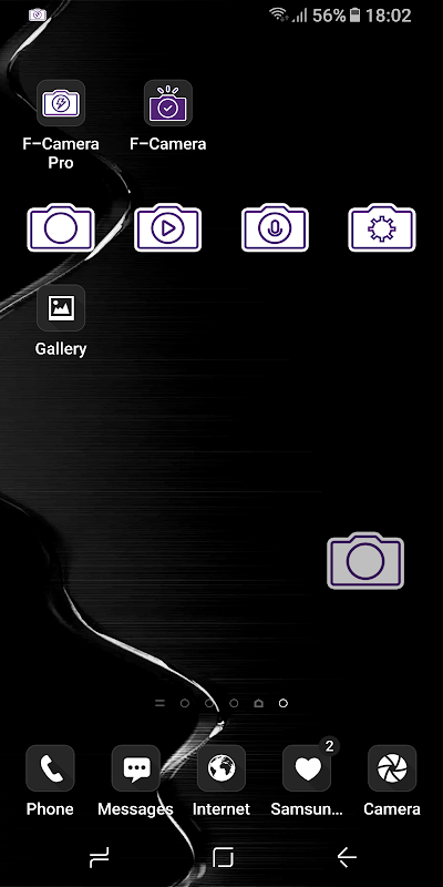 এর এফ ক্যামেরা প্রো শক্তিশালী বৈশিষ্ট্য বিল্ট-ইন উইজেট হয়। তারা আপনাকে অবিলম্বে ছবি, ভিডিও রেকর্ড বা অডিও রেকর্ড নিতে অনুমতি দেয়! তাদের উইজেট পর্দায় খুঁজুন।