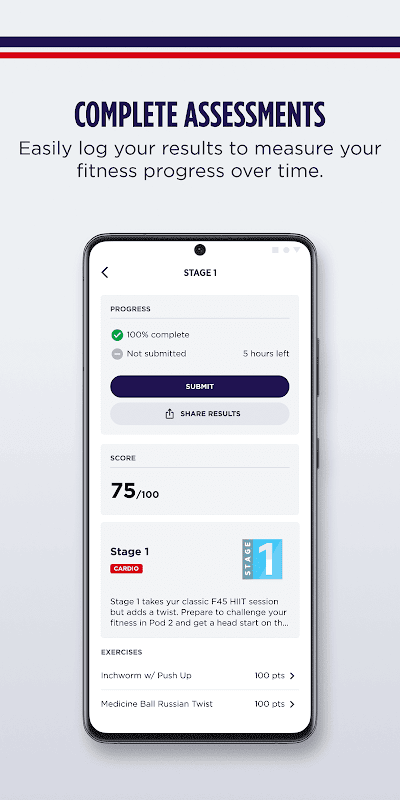 • প্লেঅফ বা বেঞ্চমার্কের মতো ফিটনেস মূল্যায়নের জন্য সহজেই লগ করুন এবং আপনার ফলাফল শেয়ার করুন এবং অনুপ্রাণিত থাকার জন্য রেড বনাম নীল দলে যোগ দিন।
