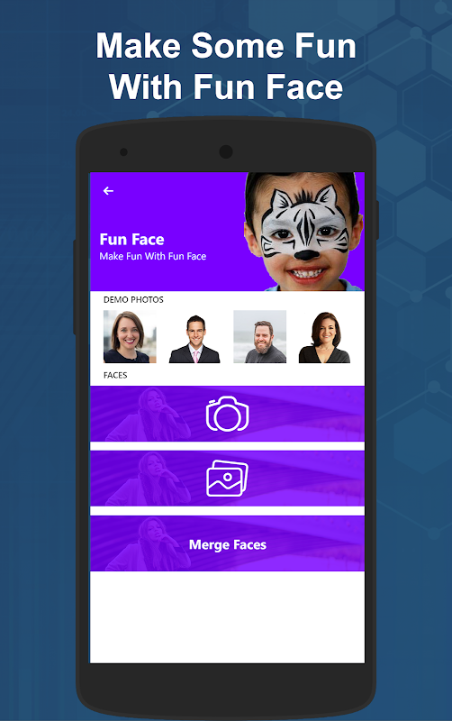 Fun face feature lets you have fun with faces by combining two faces.