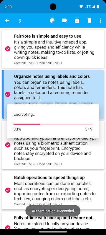 আঙ্গুলের ছাপ (Android 6.0+) এবং অন্যান্য বায়োমেট্রিক্স (Android 10+) ব্যবহার করে নোটগুলি এনক্রিপ্ট এবং ডিক্রিপ্ট করুন