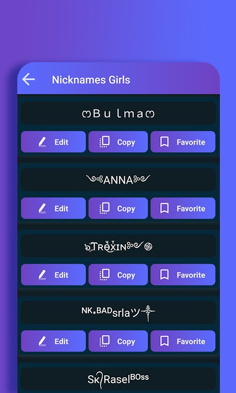 এই আড়ম্বরপূর্ণ নাম সম্পাদক অ্যাপের সাহায্যে নিক তৈরি করতে শীতল প্রতীক সহ অনেক বিরল ফন্ট রয়েছে। আপনি বিভিন্ন ক্যালিগ্রাফিক ফন্ট শৈলীর সাথে আপনার পছন্দের যেকোনো পাঠ্য রাখতে পারেন এবং আপনার সামাজিক নেটওয়ার্ক প্রোফাইলগুলির জন্য বিভিন্ন ফন্ট আইটেম দিয়ে এটি সাজাতে পারেন।