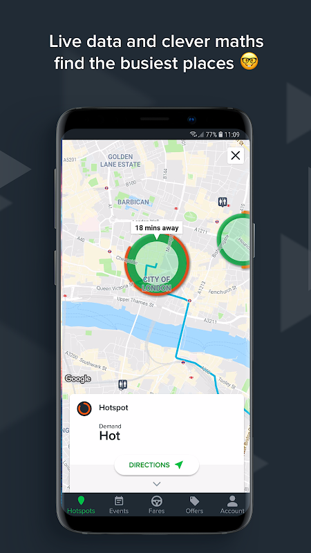 Hotspots are data driven areas of high customer demand so you can find your next ride faster and make more money! You’ll also see driver friendly restrooms, petrol stations and electric charging points on the map. If you’re a driver in London, you’ll see live transport disruptions on the map too (coming to more cities soon).