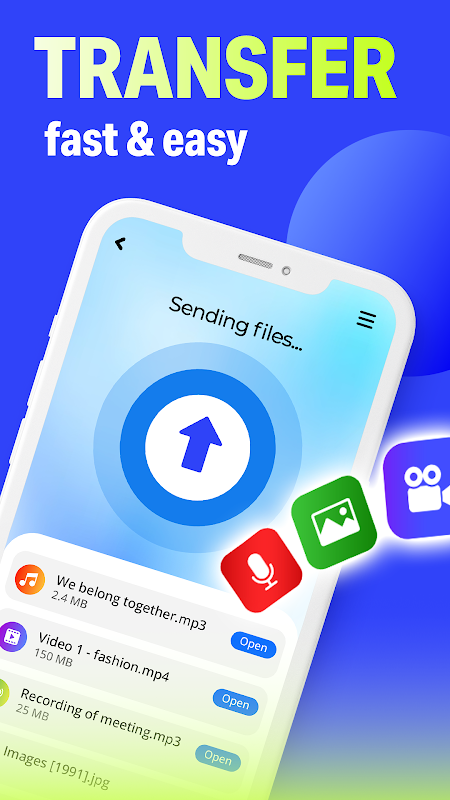 ফাইল ট্রান্সফারের মাধ্যমে, আপনি মাত্র কয়েকটি ট্যাপ দিয়ে দ্রুত এবং নিরাপদে ফাইল শেয়ার করতে পারবেন। আপনি ভিডিও, ফটো, মিউজিক, পরিচিতি বা অ্যাপ শেয়ার করতে চান না কেন, আমাদের অ্যাপটি বিদ্যুৎ গতিতে যেকোনো কিছু পাঠানো সহজ করে তোলে। এখন ডাউনলোড করুন এবং সহজ ফাইল শেয়ারিং অভিজ্ঞতা!