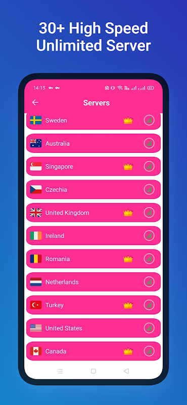 দ্রুত গতির ভিপিএন HD, লাইভ স্পোর্টস ম্যাচ, যে কোনও সিনেমা বা ফাইল ডাউনলোড করার জন্য ভিডিও দেখার ও স্ট্রিমিংয়ের জন্য উচ্চ-গতির সংযোগ সার্ভার সরবরাহ করে। দ্রুত গতিতে ভিপিএন হ'ল অনলাইন মোবাইল গেম এবং ওয়েবসাইট ব্রাউজিং, গোপনীয়তা সুরক্ষা, বা ওয়াইফাই হটস্পট সংযোগের জন্য সেরা ভিপিএন!