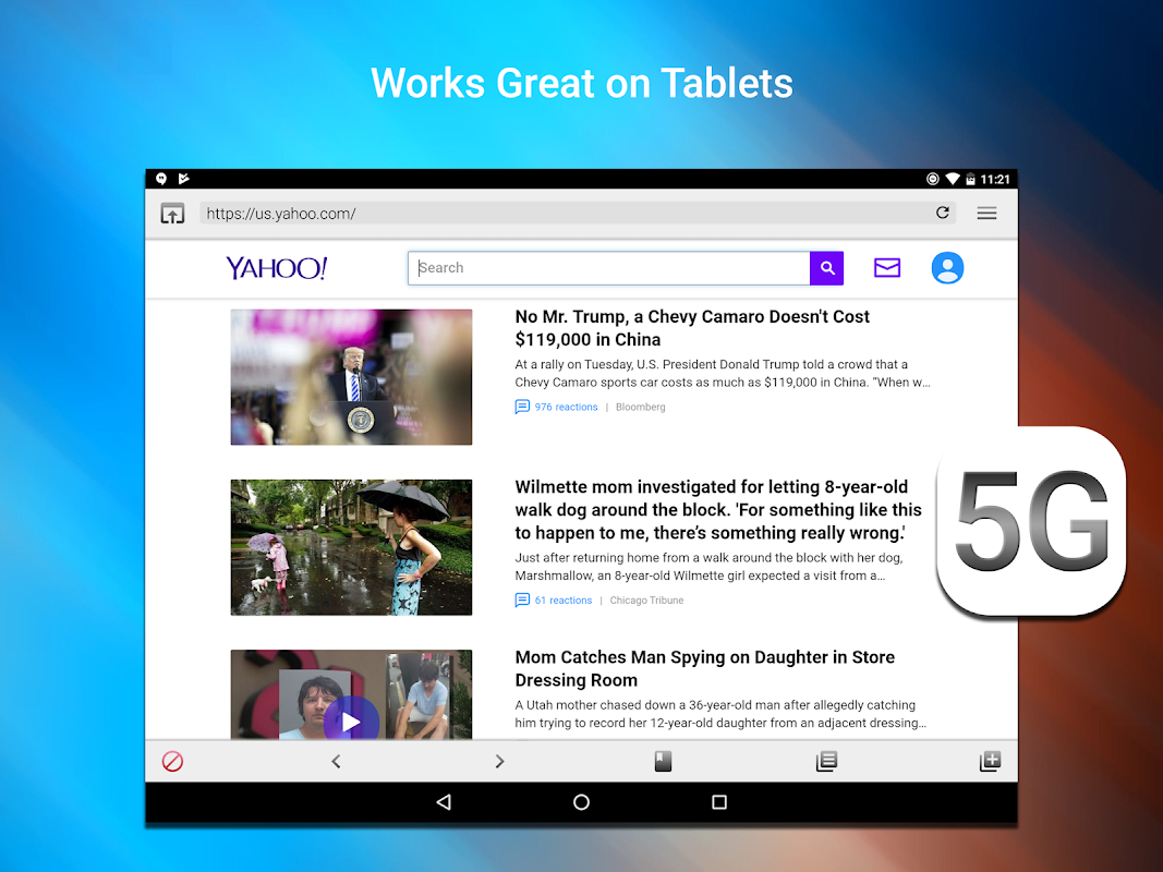 Fast modern internet web browser app that is safe and easy to use on 4G 5G LTE