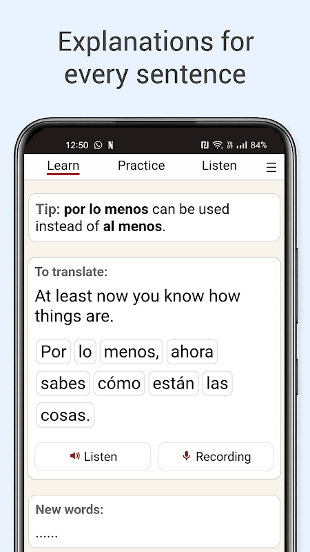 • স্বাভাবিক বাক্য যা সহজ থেকে শুরু হয় এবং আপনি এগিয়ে যাওয়ার সাথে সাথে আরও জটিল হয়ে ওঠে