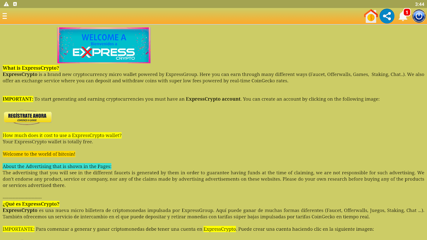 ExpressCrypto is a brand new cryptocurrency micro wallet. Here you can earn through many different ways (Faucet, Offerwalls, Games, Staking, Chat..). We also offer an exchange service where you can deposit and withdraw coins with super low fees powered by real-time CoinGecko rates.