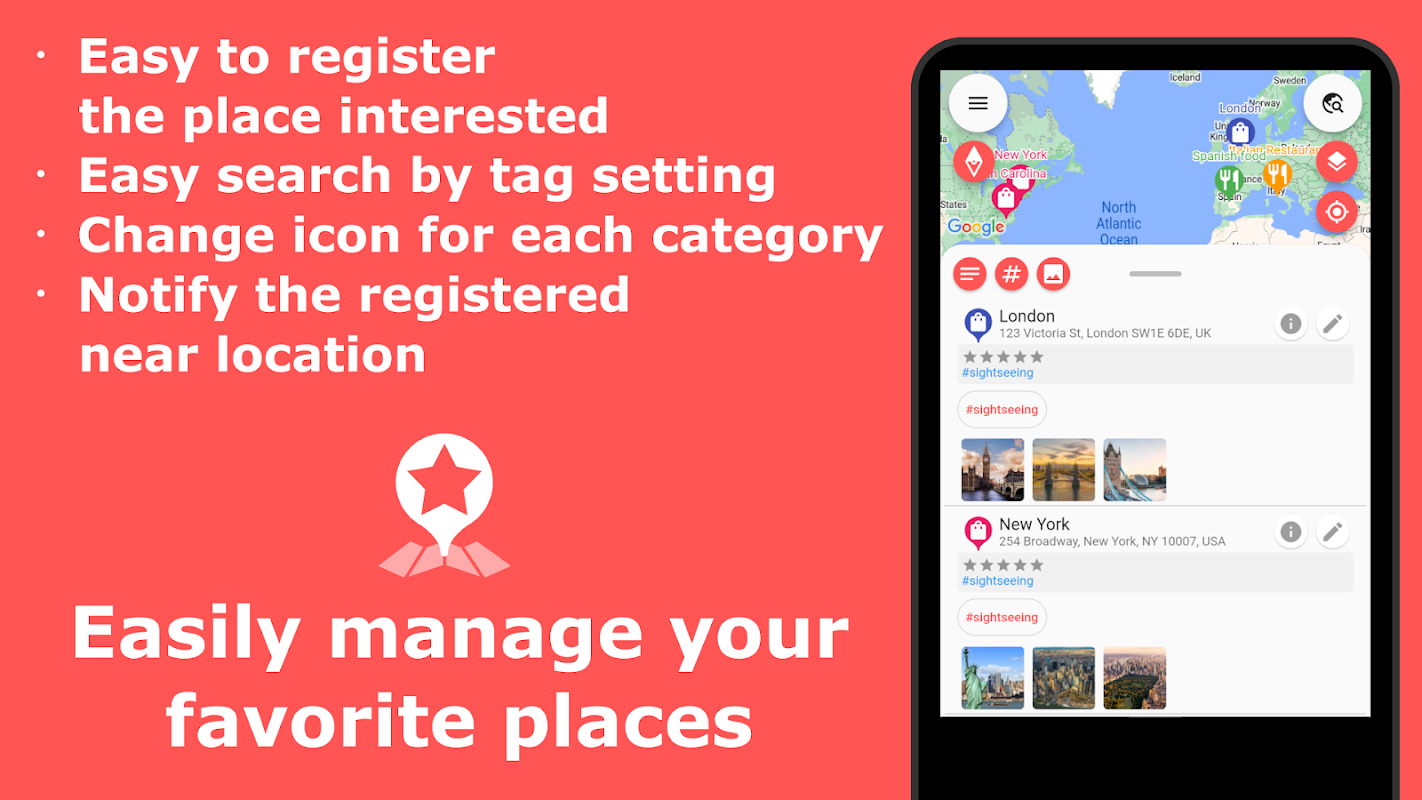 - মানচিত্র অ্যাপ্লিকেশন এবং ওয়েব অনুসন্ধান ফলাফল থেকে এই অ্যাপ্লিকেশনের সাথে ভাগ করে সহজেই একটি স্থানের ডেটা নিবন্ধন করুন৷