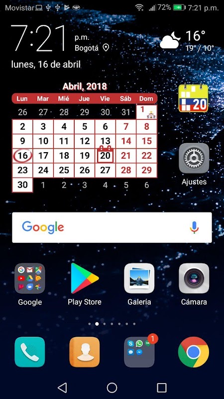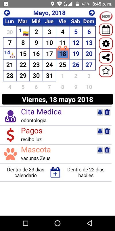 কলম্বিয়া হলিডে ক্যালেন্ডার, উইজেট, নোট, ফ্রি, মুন ফেজ
