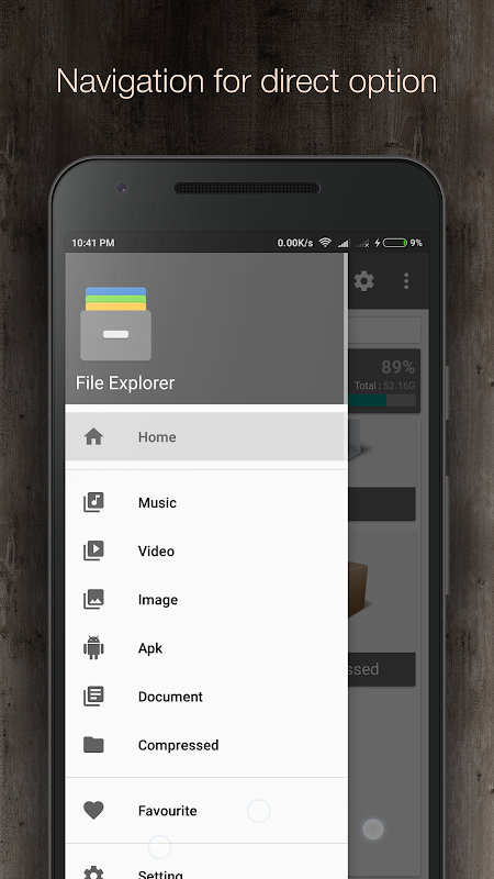 You can find any kind of file using our fast search technique. We made this application for multiple use like play music, watch video, manage files, make favorite files in favorite category, category wise files easy file selection mode to cut, copy and paste files, rename files, music library and much more facilities we provided in this file manager.
