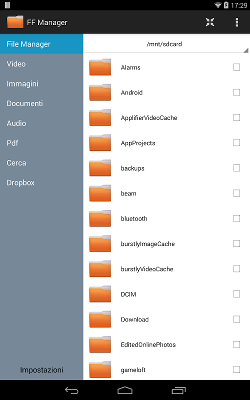 Simple and intuitive file manager, with many functions for manage all folders and files of the device.