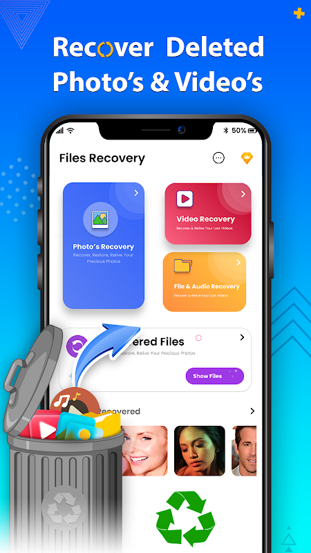 আপনি ভুলবশত ফটো, ভিডিও, অডিও, বা গুরুত্বপূর্ণ নথি মুছে ফেলেছেন না কেন, আমাদের ফাইল পুনরুদ্ধার অ্যাপ আপনাকে মাত্র কয়েকটি ট্যাপে হারিয়ে যাওয়া ফাইলগুলি পুনরুদ্ধার করতে সহায়তা করে৷
