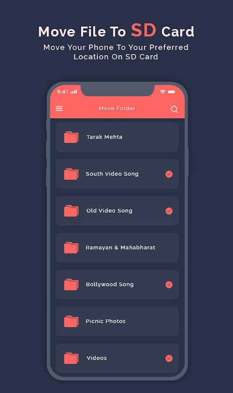 SD ফাইল ও ফোল্ডারগুলিকে এসডি কার্ড বা ফোনে পছন্দের স্থানে স্থানান্তর করুন।