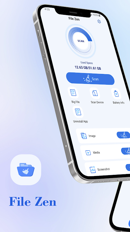 ফাইল স্ক্যানিং: আপনার ডিভাইসে ভিডিও, ছবি, নথি, স্ক্রিনশট, ডাউনলোড করা ফাইল, সংকুচিত ফাইল, লগ ফাইল, বড় ফাইল বা খালি ফোল্ডারগুলি আবিষ্কার করতে এক-ক্লিক স্ক্যান করুন৷