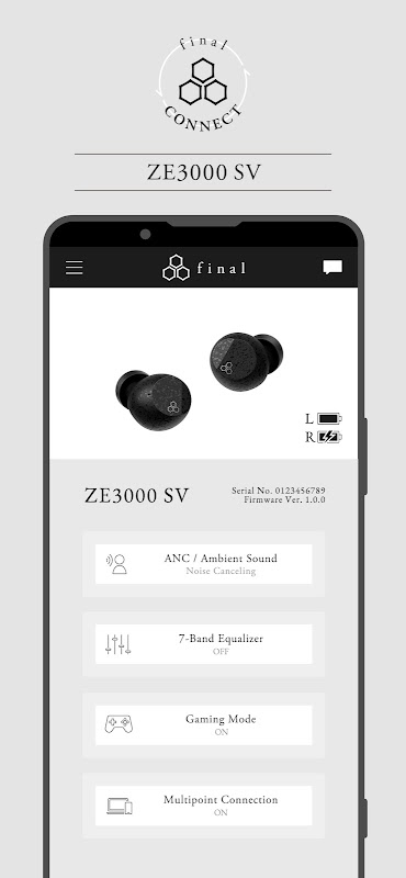 ফাইনাল অডিওর ওয়্যারলেস অডিও পণ্য কাস্টমাইজ করার জন্য একটি মোবাইল অ্যাপ