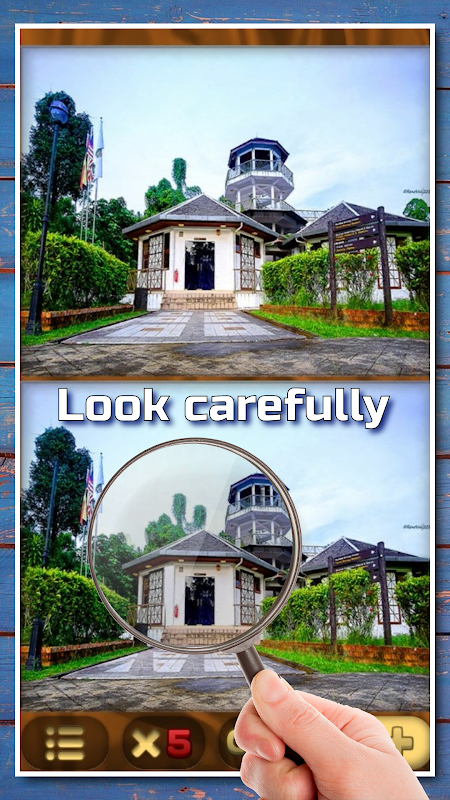 25 levels, 25 different pictures, on each level for 10 differences. There is one hint at all levels, but it's not easy to find. We can collect tips or immediately take advantage of it. You can zoom in on the pictures. It does not matter which of the two pictures you specify on the difference, it will still be highlighted in two pictures at once. For every blunder you will have a cross. Try to find the differences correctly.