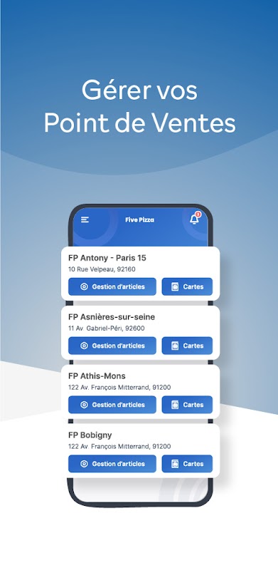1. পয়েন্ট অফ সেল ম্যানেজমেন্ট (GPV): সহজে আপনার বিক্রয়ের পয়েন্টগুলির ব্যবস্থাপনাকে অপ্টিমাইজ করুন৷ আপনার রেস্তোরাঁর মেনু সম্পাদনা করুন, মূল্য সামঞ্জস্য করুন এবং রিয়েল টাইমে আইটেম স্টক স্থিতি ট্র্যাক করুন। আমাদের স্বজ্ঞাত GPV সমাধান দিয়ে আপনার গ্যাস্ট্রোনমিক অফার নিয়ন্ত্রণ করুন।