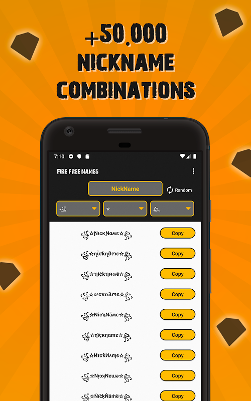 😎 সহজ, দ্রুত এবং বিনামূল্যে। আপনি একটি এলোমেলো নাম তৈরি করতে পারেন এবং এটি আপনার পছন্দ অনুসারে পরিবর্তন করতে পারেন। তারপরে আপনার অনুলিপি খেলা বা সামাজিক নেটওয়ার্কগুলিতে কেবল অনুলিপি করুন এবং আটকান।