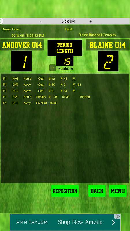 This timer includes the ability to set up and add details for goals, assists, penalties and timeouts with an interface that has been designed for easy use and quick response.