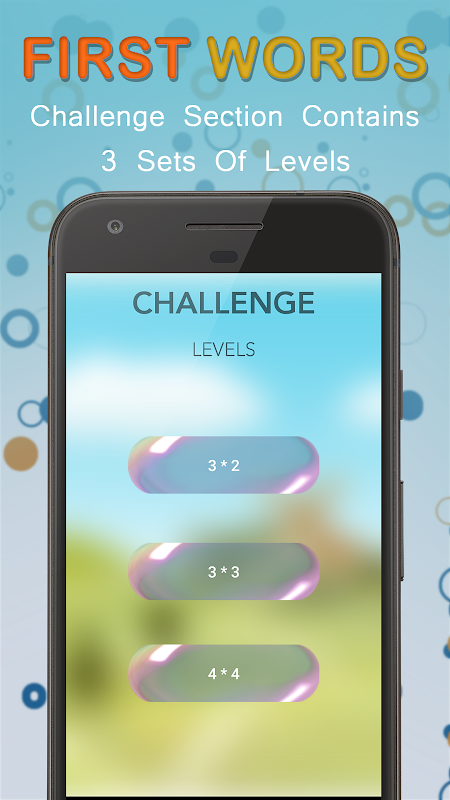 Quiz levels are available in 2*2, 2*3 and 3*3 words.