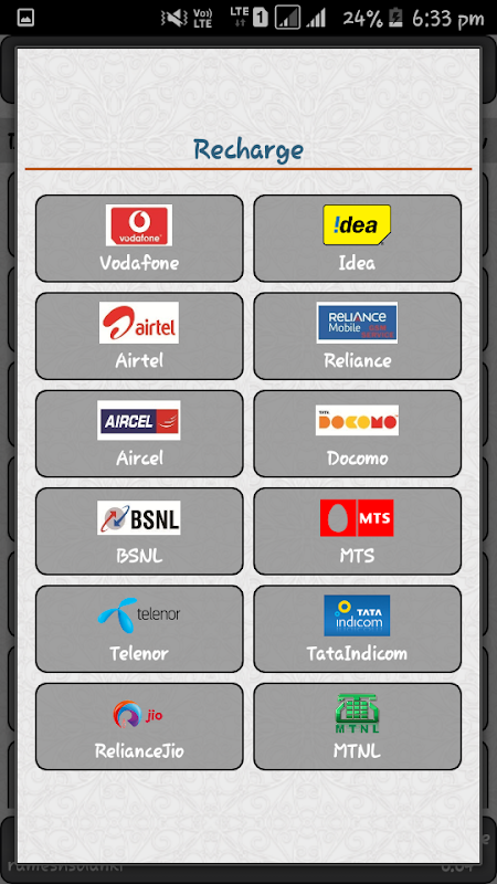 FirstPay Recharge offers simple and instant recharge for Aircel, Airtel, Vodafone, Tata Indicom Mobile, Reliance Mobile, Tata Docomo, BSNL, Idea, Videocon Mobile and Virgin Mobile and DTH services for Tata Sky, Dish TV, Reliance Digital TV,Sun Direct, Airtel Digital TV, Videocon d2h