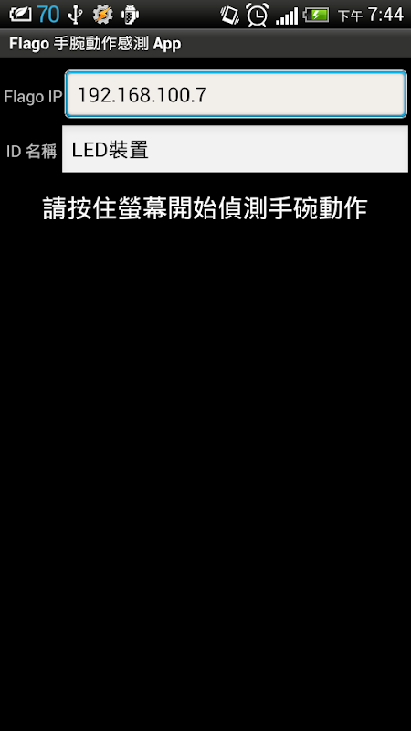 本 App 會透過 WiFi 連線旗標 FlagO!, 然後會偵測體感動作, 將方向傳送給 FlagO!。