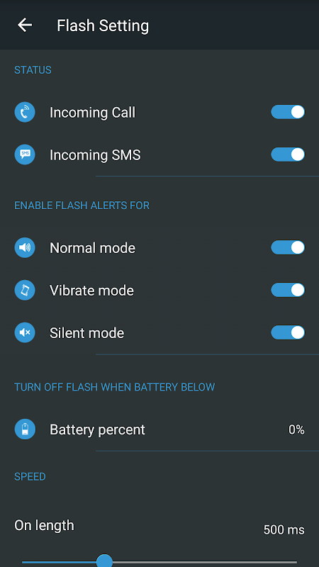 - Flash Alerts on Call and SMS has Material design UI, nice and easy to use