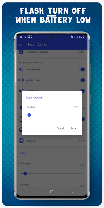 ব্লিঙ্ক ফ্ল্যাশ অন কল নোটিফিকেশন, অ্যাপটি আপনাকে মোবাইল টর্চ ফোনের ফ্ল্যাশলাইট ক্যামেরা ব্লিঙ্ক করার অনুমতি দেবে যখনই আপনি একটি ফোন ফ্ল্যাশ কল বিজ্ঞপ্তি বা SMS টেক্সট বা অন্যান্য বিজ্ঞপ্তি পাবেন। ফ্ল্যাশ অন-কলের এই বৈশিষ্ট্যটি ব্যবহারকারীর সুবিধা বাড়াতে পারে বা প্রতিবন্ধী ব্যবহারকারীকে সাহায্য করতে পারে।
