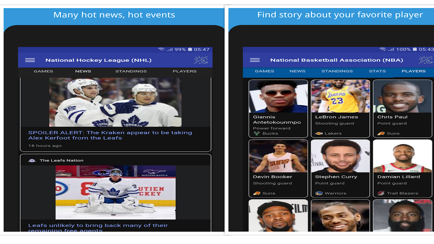 Welcome to the VinaScores app, this is a best Free Sport app where you easy to find the live score, scoreboard, schedule, standings, ranking, stats, news, game's recap and player's information of the NBA basketball, NFL football, MLB baseball,