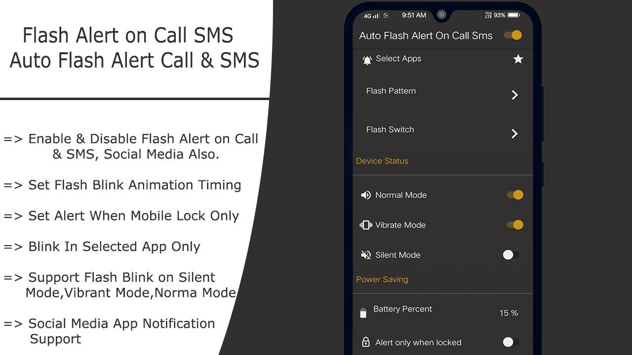 Flash On Call is a smart and Top Rated application available on the Google Play Store. This app gives flash alerts on incoming calls and SMS with the blink of your flash light.