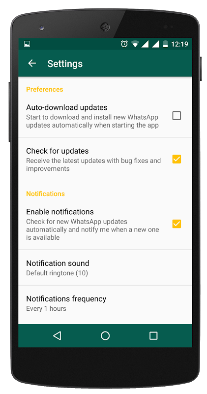 - Select automatic check interval to get updated with latest releases of WhatsApp™.