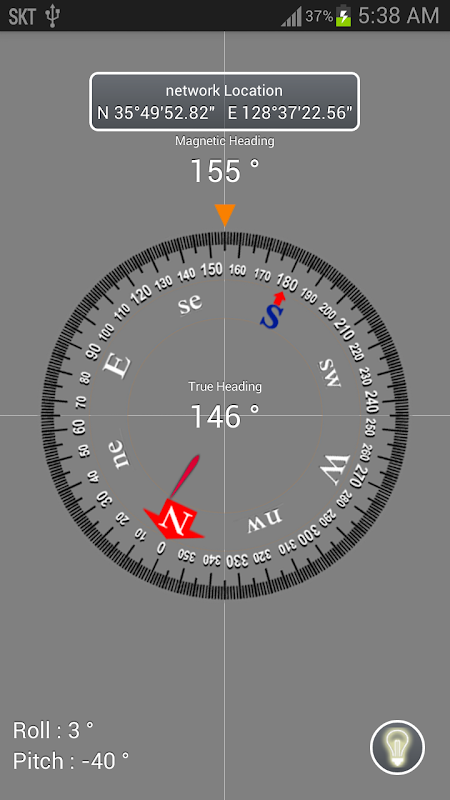 flashlight compass supports magnetic and true north calculated using network location or GPS coordinates.