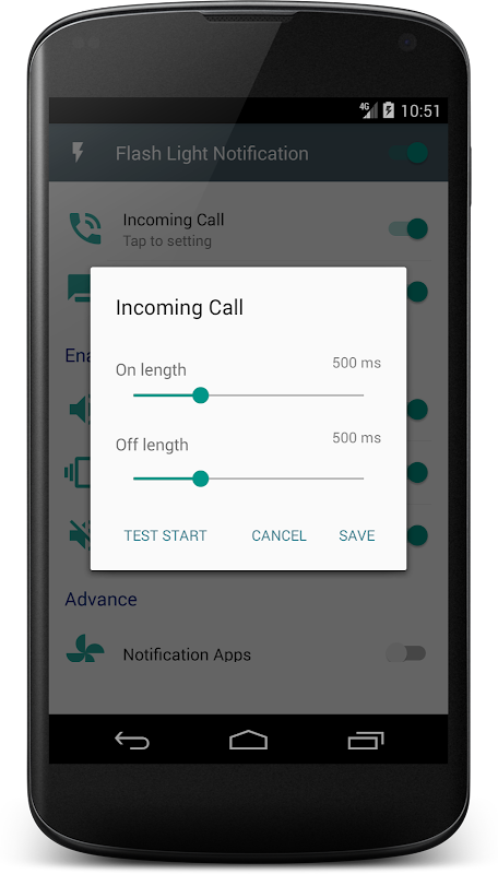- Flashlight Notification on Call and SMS has Material design UI, nice and easy to use.